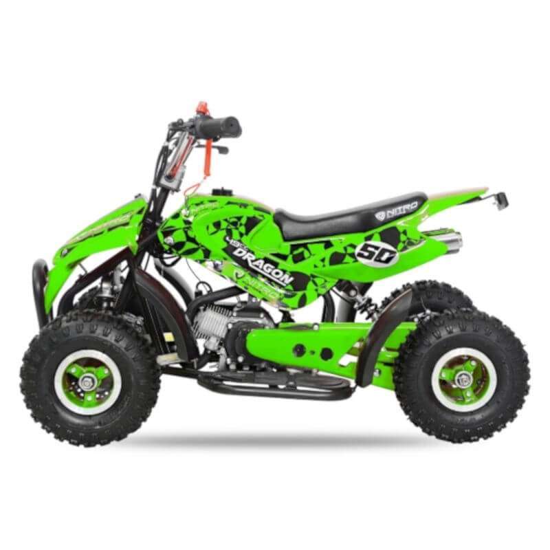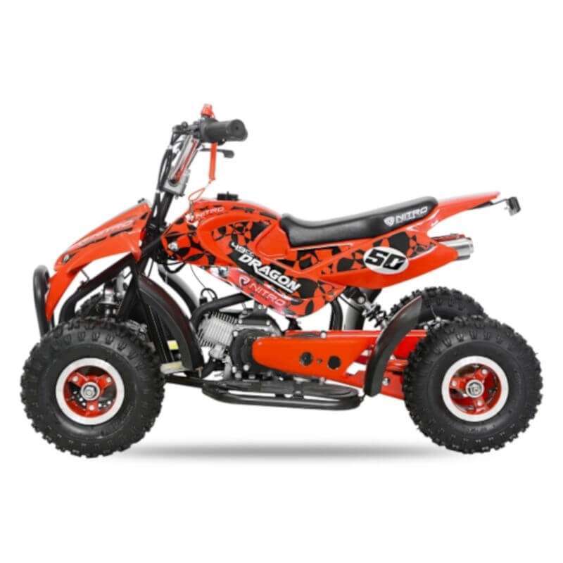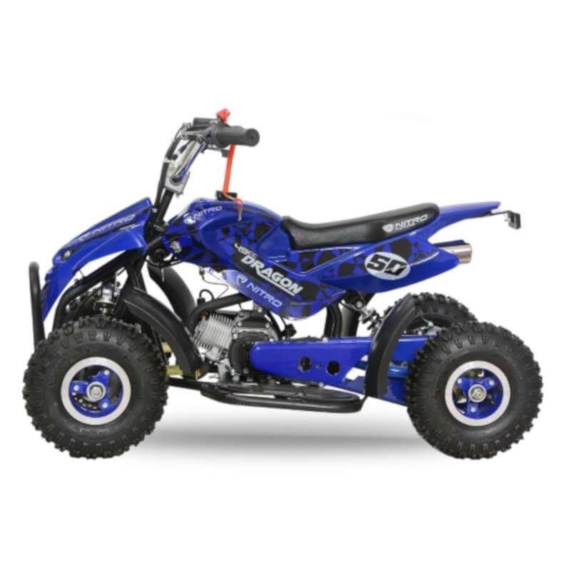 Atención al cliente télefono 633 083 659La casa NITRO presenta el nuevo mini Quad infantil DRAGON 49cc una excelente opción a un precio asequible para iniciarse en el mundo del motor. Este modelo de miniQuad infantil es, posiblemente, el miniQuad más vendido en todo el mundo por ser de los primeros modelos de la marca alemana.