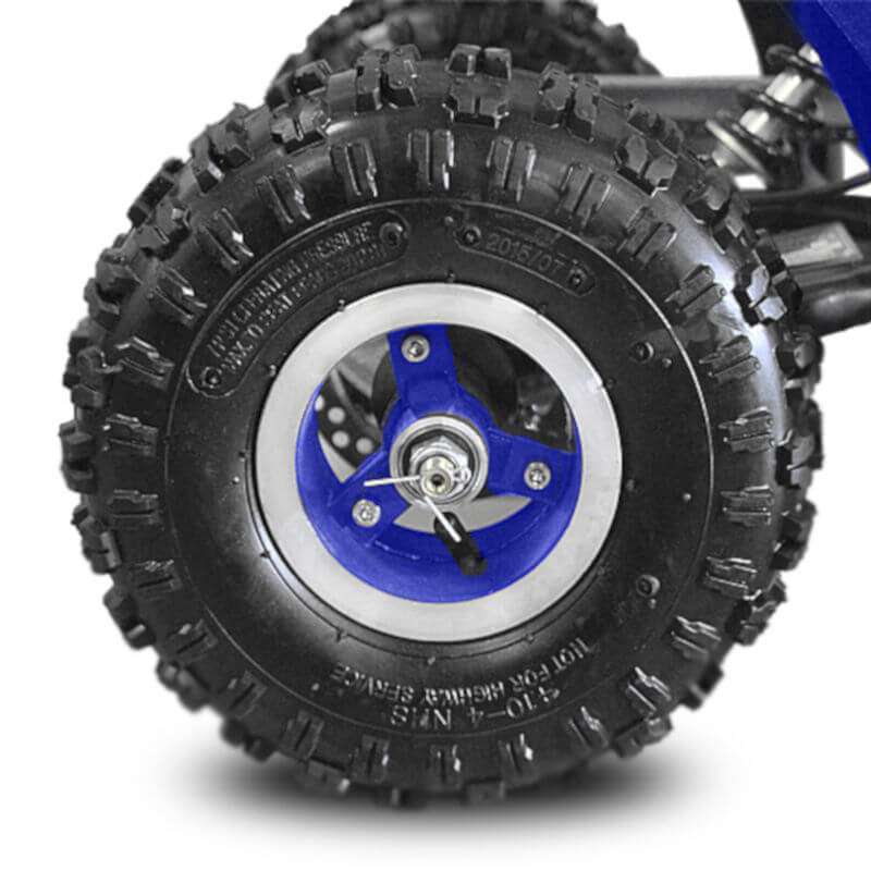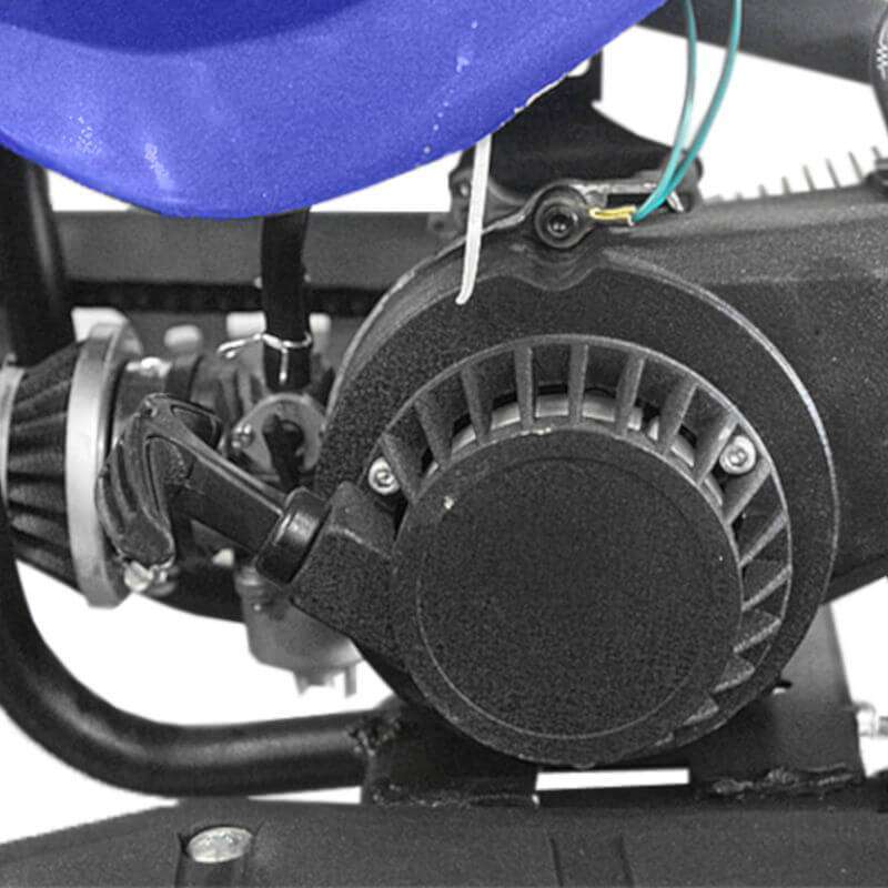 El Quad infantil lleva un motor 49cc de 2 tiempos refrigerado por aire. Su conducción es muy cómoda ya que tiene triple amortiguación y un suave recorrido el manillar de dirección permitiendo acelerar con el gatillo mientras se esta tomando una curva.
